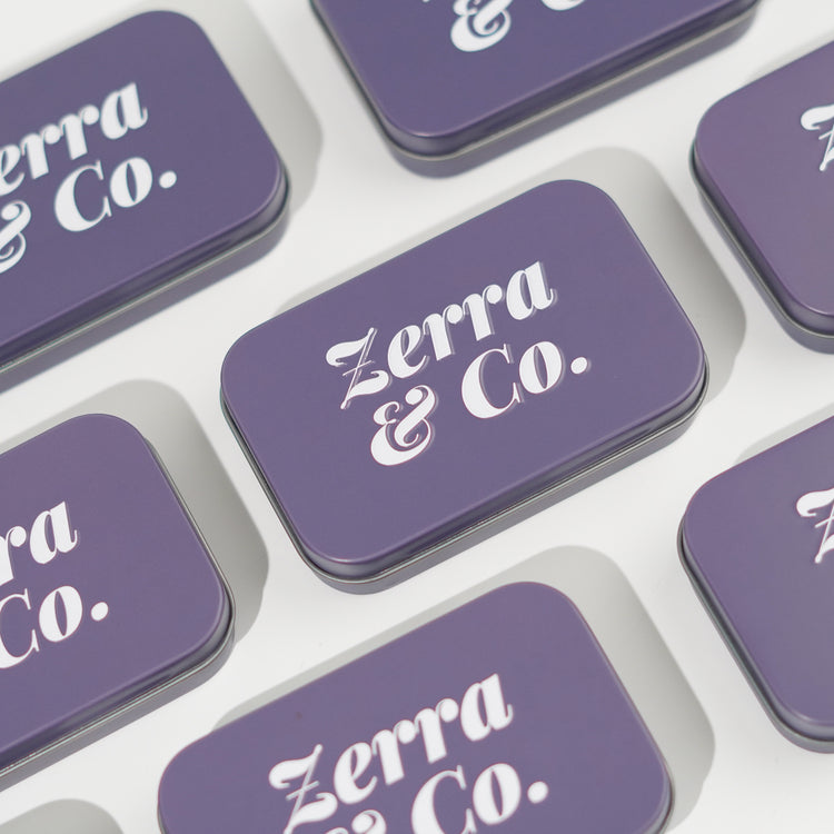 This Zerra & Co. embossed metal tin is perfect to store your Lotion Bars or take them on the go! This versatile travel tin container can also be used to store hair ties, clips or even your clean Mascara and Eyeliner brushes.