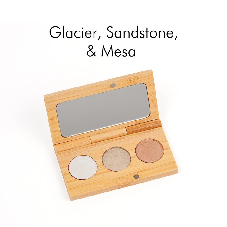 Our Pressed Mineral Eyeshadows are available in fifteen different shades with something for everyone! Pair with our refillable Eyeshadow Palettes for the perfect customizable palette. You can pick the exact three shades you love, and skip the ones you don't.
