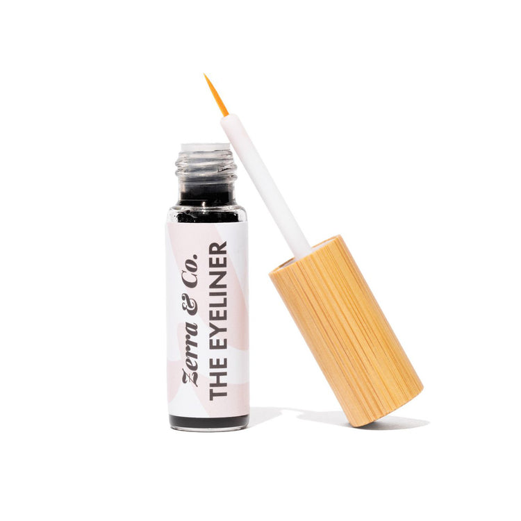 Say hi to The Eyeliner! Our best-selling eyeliner has been reformulated into the zero waste liquid liner of your dreams. Now with a built in applicator, a slightly larger size & endlessly refillable packaging. This product is perfect for anyone who loves a sharp winged liner, but hates plastic waste. Featuring a glass vial and a bamboo lid means this has 60% less plastic by weight than conventional eyeliners!